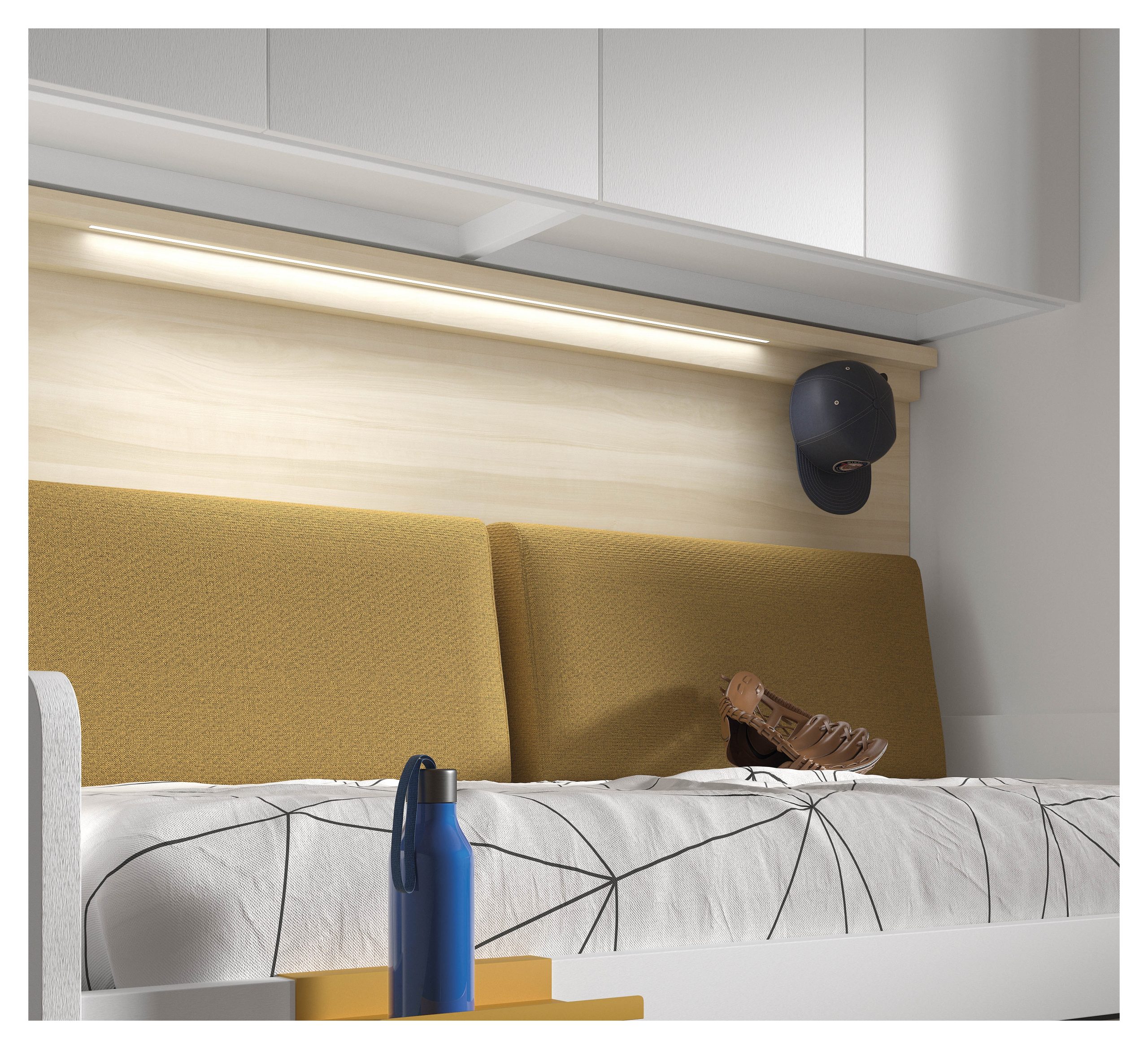 Los tonos blanco, bio, tierra, curry y denim crean una combinación fresca y contemporánea, realzada por el elegante tirador Ola que añade un toque distintivo. Con esta suite, ofrecemos una solución completa que refleja el estilo de vida juvenil actual.
