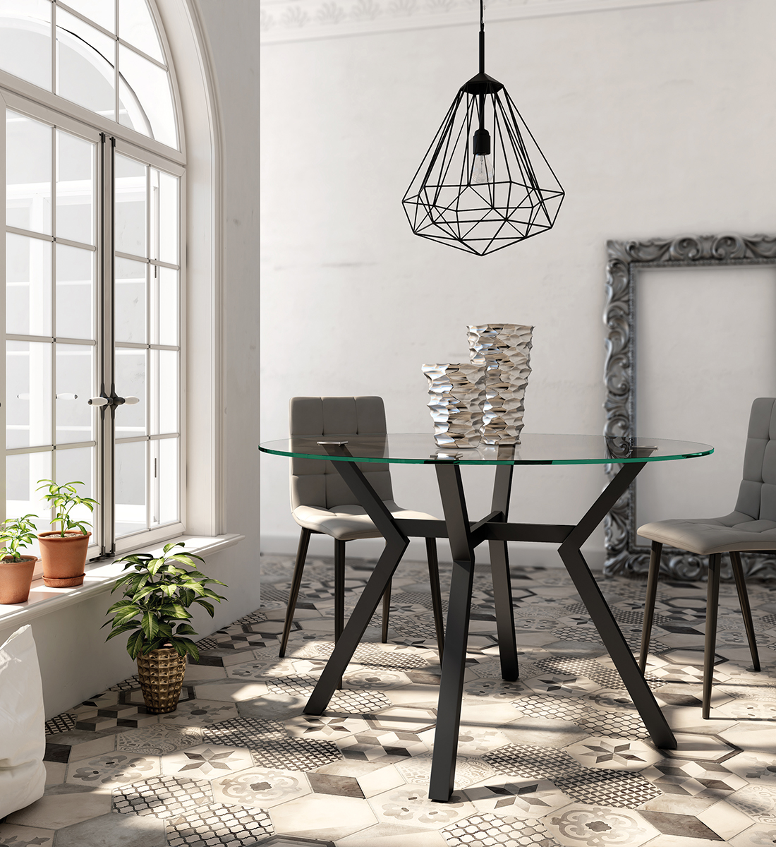 Mesa de comedor modelo Alborán redonda cristal 36-14
